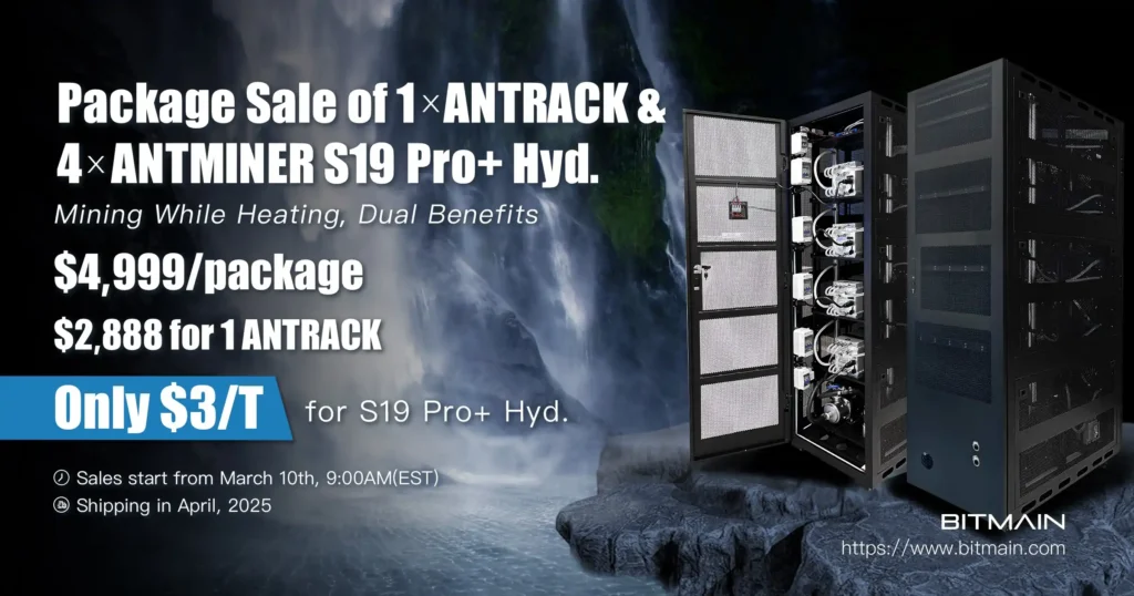 BITMAIN unveils a game-changing bundled solution—the ANTRACK monitoring system paired with four S19 Pro+ Hyd. hydro-cooling miners—designed to maximize efficiency and profitability through integrated heat recovery technology.